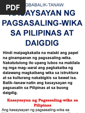 Kasaysayan Ng Pagsasalin Sa Pilipinas At Daigdig Pdf