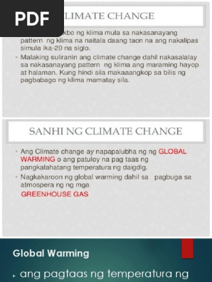 Ang tuloy-tuloy ba pagtaas o pag-init ng temperatura sa rabaw surface ng mundo dahil sa pagtaas ng level ng mga green house gas GHG na nakapagpapanipis ng ozone layer ng mundo. Ocean Variability pagtaas ng lebel ng tubig dagat at pagtaas ng temperatura sa kalawakan kaalinsabay ang pag-init ng karagatan. Ang Greenhouse Effect at Global Warming Sa syentipikong pag-unawa ang global warming ay resulta ng malakihang konsentrasyon o bolyum ng greenhouse gases GHG sa kalawakan.
