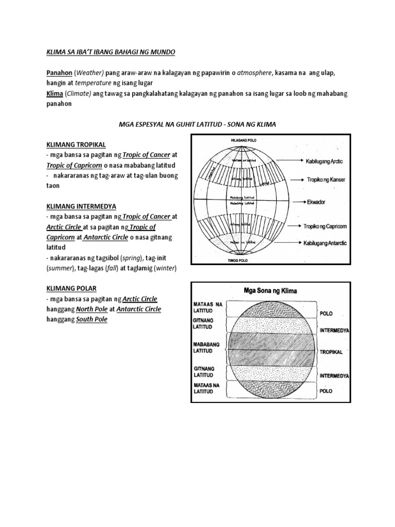 Ang gitnang latitud mataas na latitud at mababang latitud ay bahagi ng mundo na nakakaapekto sa klima at panahon ng isang lugar. Ipaliwanag kung bakit mayroong apat na uri ng klima sa ibang panig ng mundo. May apat na klima sa mga lugar na nasa lutitud.