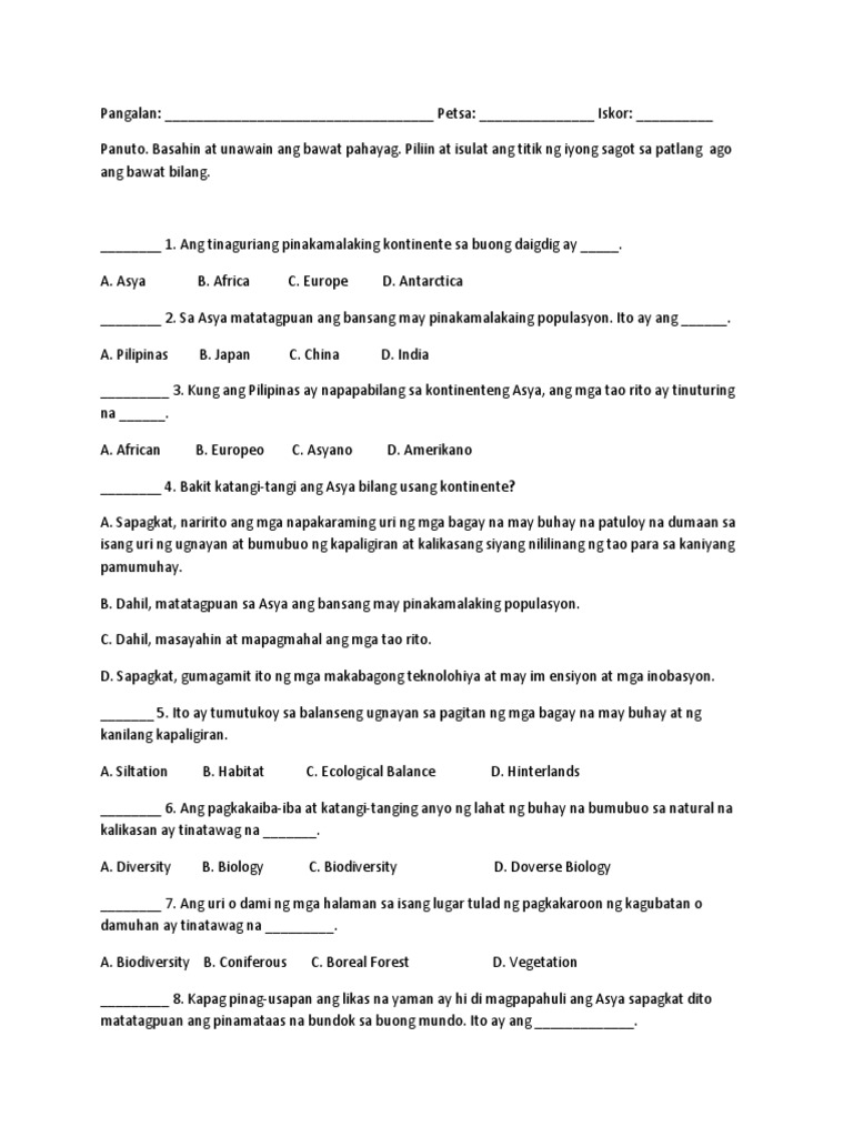 Nasa pagitan ito ng dating Unyon Sobyet sa hilaga at Tsina sa silangan. Ito ang ikalawa sa pinakamaliit na kontinente ng daigdig sa lawak na halos 68 ng kabuuang lupa ng daigdig. 12 4 Mamamayang may kakayahang maghanapbuhay at makapag-ambag sa pag-unlad ng bansa yamang tao 5 Grosss Domestic product na hinati sa buong populasyon ng isang bansa GDP per capita 6 Hanapbuhay ng mga Asyano sa Silangang Asya Timong.